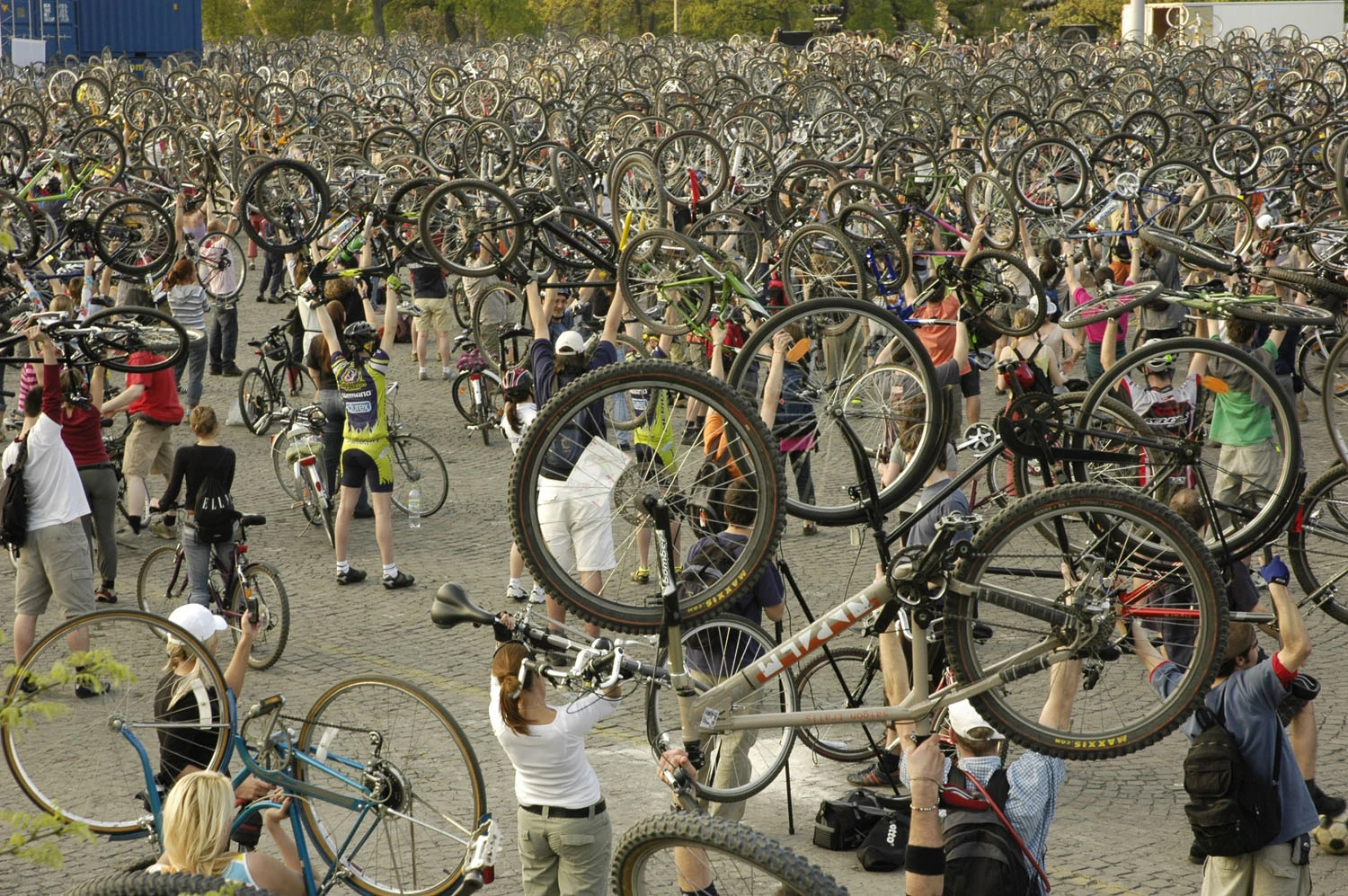 Critical Mass ist ein Event, meist jeden letzten Freitag im Monat in Städten überall in der Welt abgehalten, in dem RadfahrerInnen und FahrerInnen mit anderen selbstangetriebenen Fahrzeugen massenhaft im Pulk auf der Straße fahren.[1] Obwohl die Fahrt 1992 ihre Ursprungsidee darin begründete, aufzuzeigen wie unfreundlich die Stadt mit FahrradfahrerInnen umging,[2] macht die führunglose Struktur der Critical Mass es unmöglich, sie einem bestimmtem Ziel zuzuordnen. Tatächlich sind die Gemeinsamkeiten der unterschiedlichen Critical-Mass-Events nicht darüber hinausgehend geregelt, als sich zu einer direkten Aktion an einem festgelegten Zeitpunkt und Ort zu treffen und als Gruppe durch die Straßen der Stadt zu fahren.